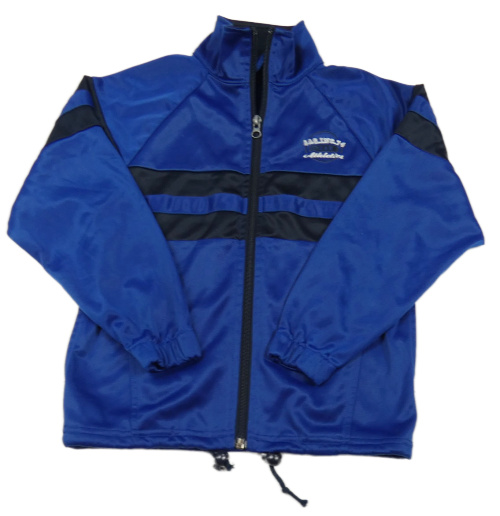 Zafírová športová prepínaci mikina s pruhmi a nápisom