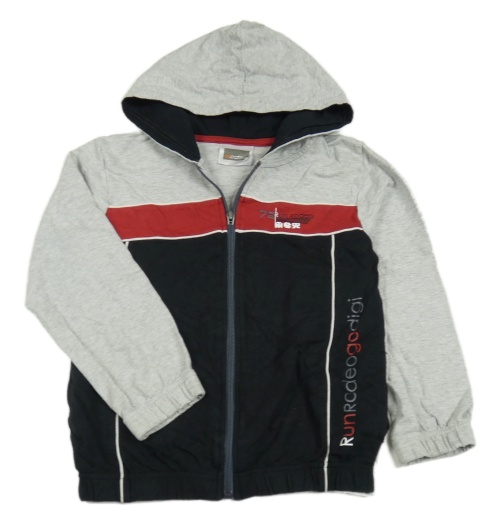 Sivo-vínovo-červená prepínaci mikina s nápismi a kapucňou C&A