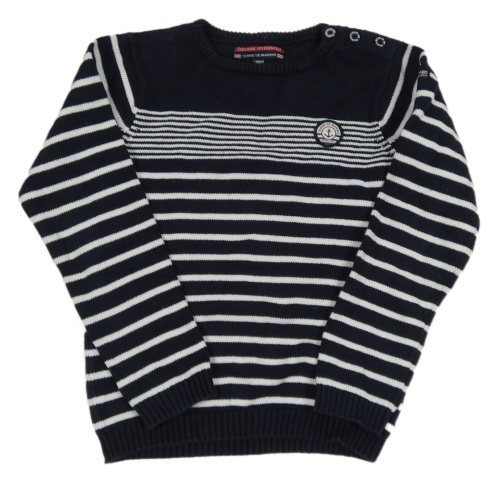 Tmavomodro-biely pruhovaný sveter s nášivkou