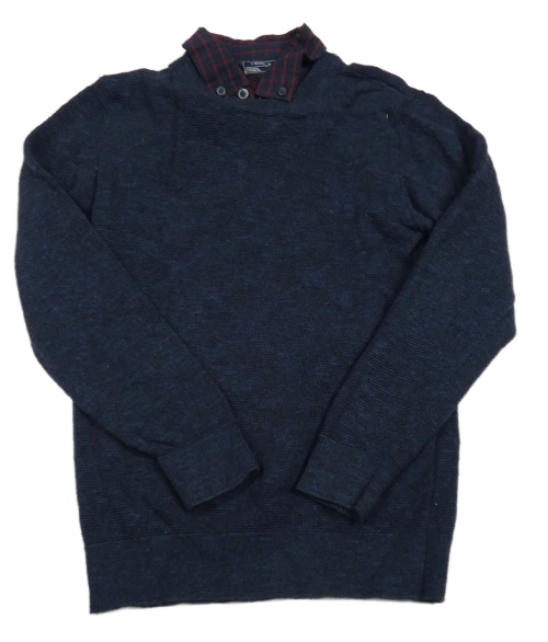 Tmavomodrý melírovaný sveter s košeľovým golierom Next