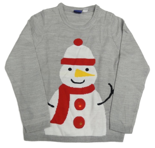 Svetlosivý melírovaný pletený sveter so sněhuláčkem a blikátkem lupilu