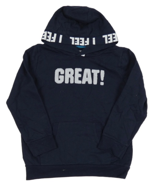 Tmavomodrá mikina s nápismi a vreckom a kapucňou Topolino