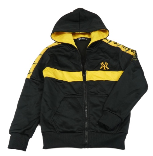 Čierno-žltá športová prepínaci mikina s výšivkou a kapucňou