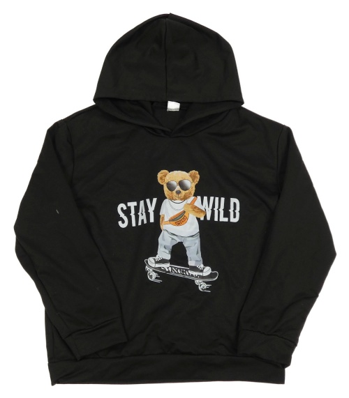 Čierna mikina s medvěďom a kapucňou