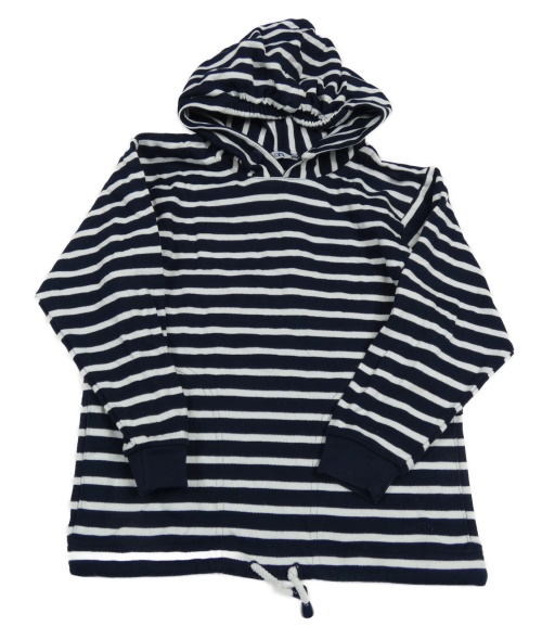 Tmavomodro-biela pruhovaná mikina s kapucňou