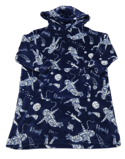 Tmavomodrá chlpatá oversize mikina s kosmonauty a kapucňou Tu