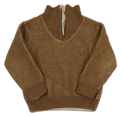 Hnedo-béžový pruhovaný vlnený sveter so stojačikom