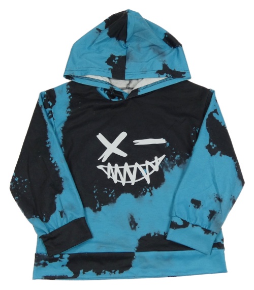 Čierno-modrá vzorovaná mikina s potlačou a kapucňou
