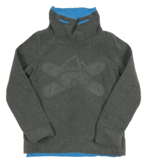 Tmavosivá fleecová mikina s lyžiarskými okuliarmi a komínovým golierom