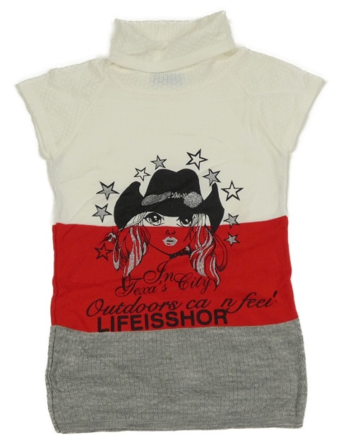 Bielo-červeno-sivá pruhovaná svetrová tunika s kovbojem a rolákom