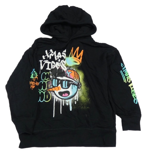Čierna mikina so sněhulákem a graffiti nápisy a kapucňou Next
