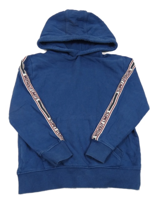 Tmavomodrá mikina s pruhy na rukávech s nápismi a kapucňou Next