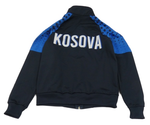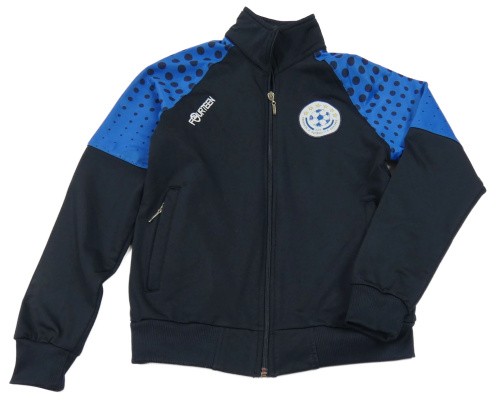 Čierno-modrá športová prepínaci mikina s bodkovaná ymi rukávy a nápisom