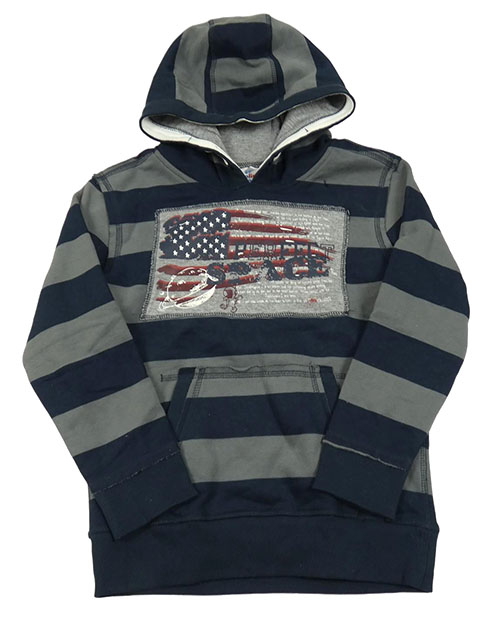 Tmavomodro-tmavosivá pruhovaná mikina s vlajkou a kapucňou Topolino