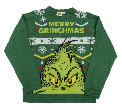 Tmavozelený pletený vianočný sveter s Grinchem