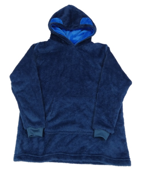 Tmavomodrá chlpatá mikina s kapucňou s uškami