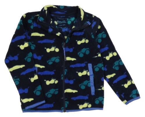 Tmavomodro-zeleno-žltá fleecová prepínaci mikina s motorkami Primark
