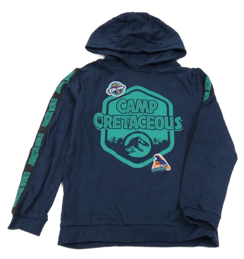 Tmavomodro-zelená mikina s nápismi a diny a kapucňou