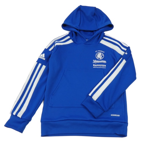 Modrá športová funkčná mikina s potlačou a kapucňou Adidas