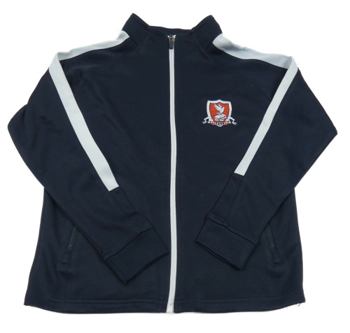 Tmavomodro-biela športová prepínaci mikina s nášivkou
