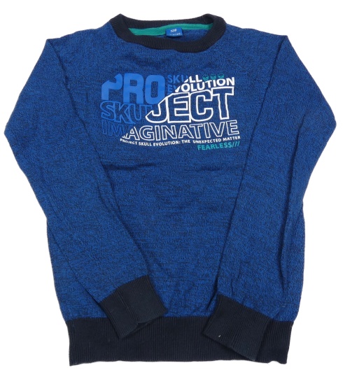 Zafírový melírovaný sveter s nápisom Y.F.K.