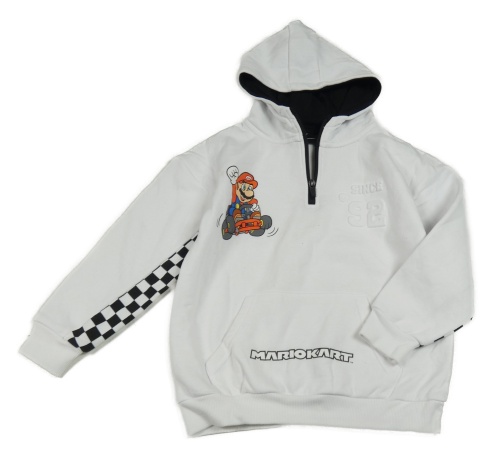 Bielo-čierna mikina s Máriem a vreckom a kapucňou PRIMARK