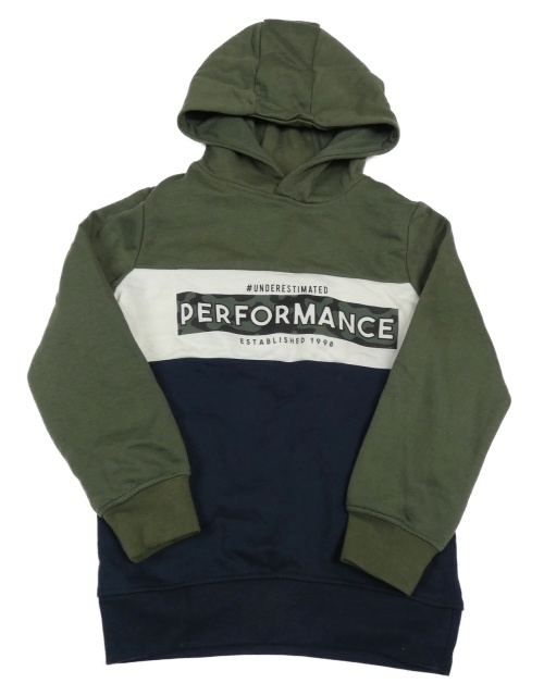 Kaki-bielo-tmavomodrá mikina s nápisom a kapucňou Y.F.K.