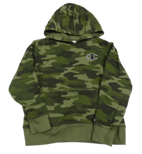 Kaki-sivá army mikina s logom a kapucňou Champion
