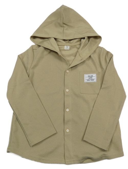Béžová prepínaci ľahká mikina s nášivkou a kapucňou