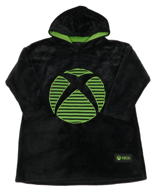 Čierna plyšová oversize domáceá mikina s logem XBOX a kapucňou