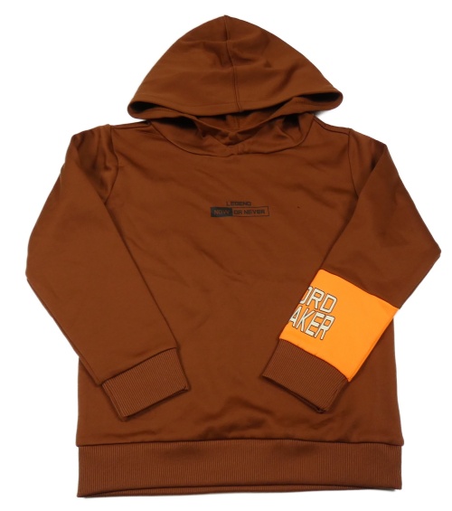 Hnedo-neónově oranžová thermo mikina s nápisom a kapucňou