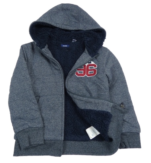 Tmavomodrá melírovaná zateplená prepínaci mikina s číslom a kapucňou Okaidi