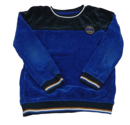 Safírovo-tmavomodrá rebrovaná zamatová mikina s nášivkou Europe Kids