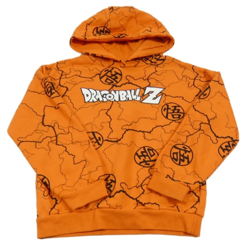 Oranžovo-čierna vzorovaná mikina s nápisom a kapucí - Dragonball