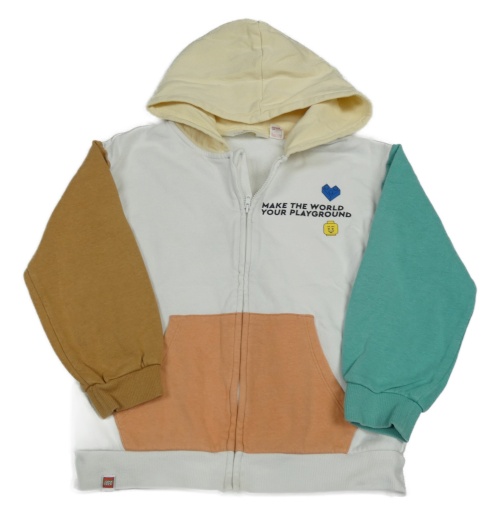 Biela prepínaci mikina s farebnými rukávy, potlačou a kapucňou H&M