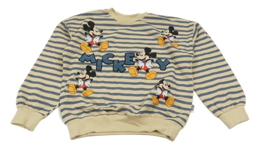 Béžovo-modrá pruhovaná ľahká oversize mikina s Mickeym