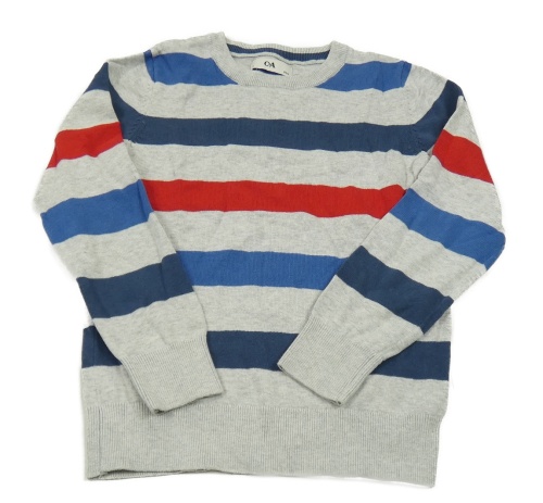 Sivo-modro-tmavomodro-červený pruhovaný melírovaný sveter C&A