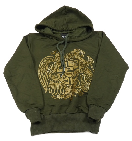 Khaki mikina s erbem a kapucňou