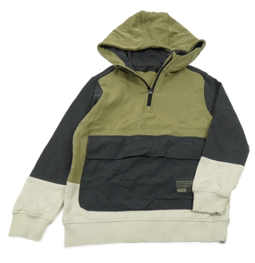 Kaki-antracitovo-béžová mikina s vreckom a kapucňou George