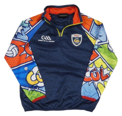 Tmavomodro-farebná melírovaná thermo mikina so znakom a graffiti nápisy a loptami McKeever