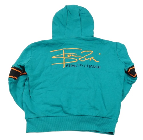 Modrozelená mikina s nášivkou a kapucňou Retour