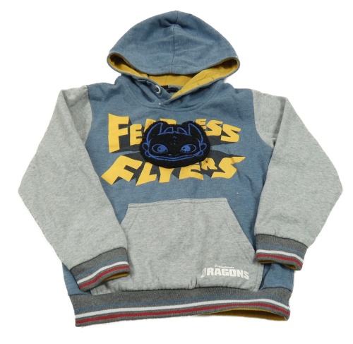 Tmavomodro-sivá melírovaná mikina s drakom a kapucňou