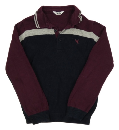 Vínovo-sivo-tmavomodrý sveter s golierikom M&S