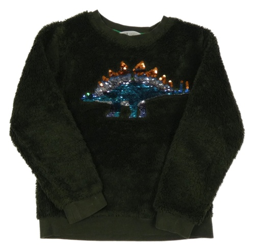 Olivová chlpatá mikina s dinosaurem z flitrů H&M