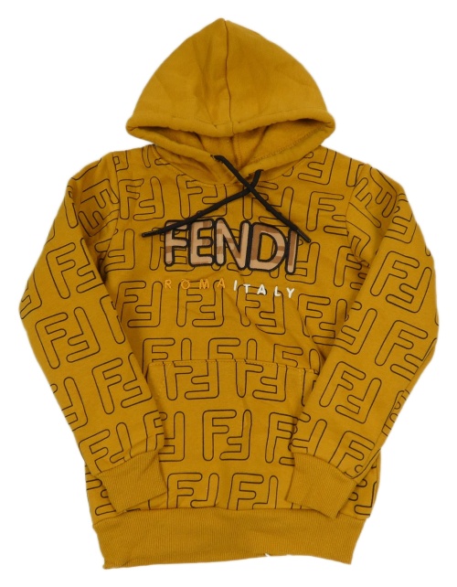 Medová mikina s nápisy Fendi a kapucňou