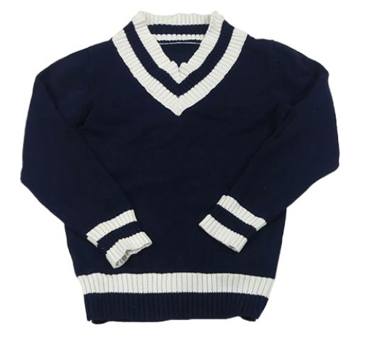 Tmavomodro-bílýý pletený sveter s pruhmi