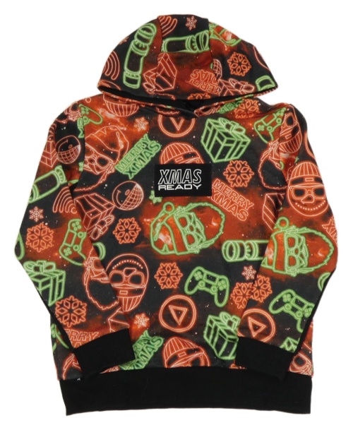 Čierno-červeno-zelená vzorovaná vianočná mikina s kapucňou George