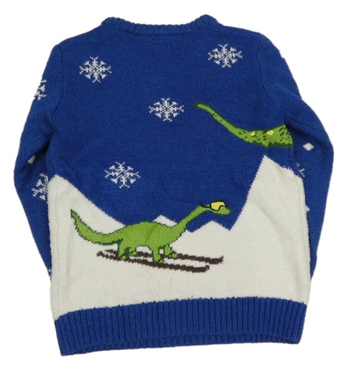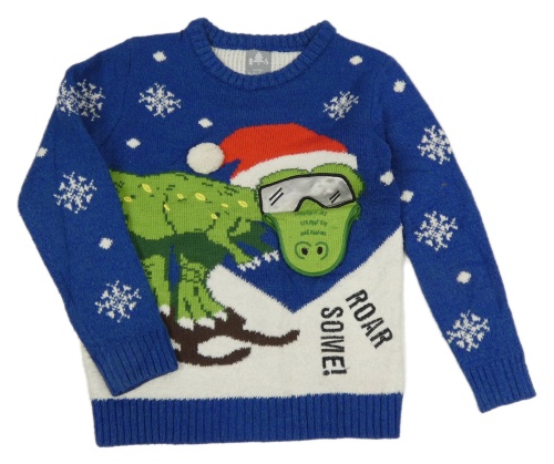 Zafírový melírovaný sveter s dinosaurom s vánočním motívom George