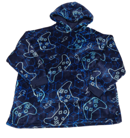 Tmavomodrá chlpatá zateplená oversize mikina s ovladači s kapucňou