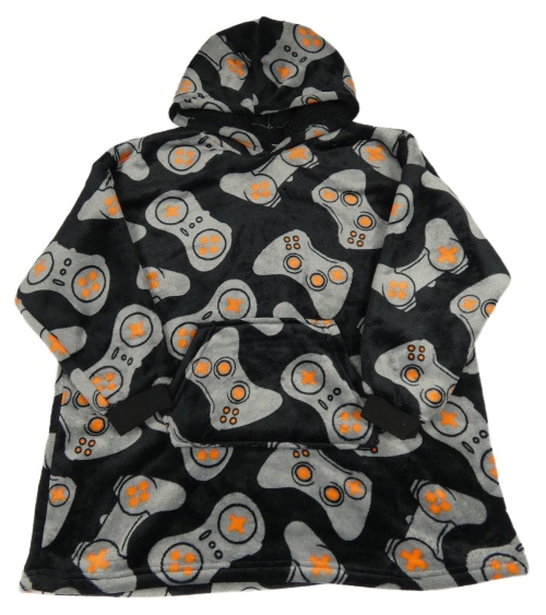Čierna chlpatá oversize mikina s ovladači a kapucí vel.122-140